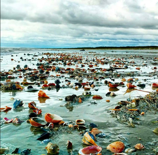 My colleague/producer/friend's home and life was ravished by Florida's Hurricane Michael a week and a half ago. Floods and outrageous winds. She was of course Federally Mandated to evacuate, like more than 2Million others.... What an upside down week for her. But perhaps now that it has dispersed...this resulting, beautiful shell-filled beach may be an uplifting sight for her!